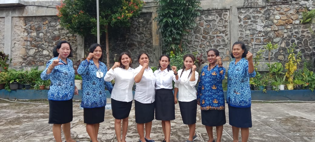 Berdasarkan instruksi dinas pendidikan untuk pakaian merah putih untuk siswa-siswi dalam kegiatan upacara yaitu guru berpakaian kopri.
